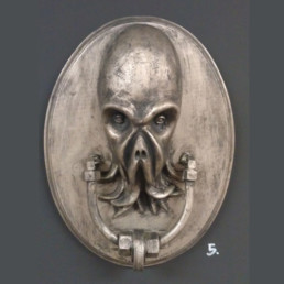 Door knocker in the style of the malevolent horror Cthulhu, but in a fun way that wont melt your eyeballs with evil. Pewter #1