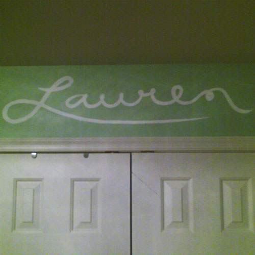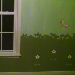 Painted a nursery for a friend in Fredericksburg VA. Tried to match the existing linens with some custom features.