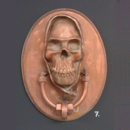 One step up from the typical skull door knocker, The Reaper! Don’t Fear the Reaper!